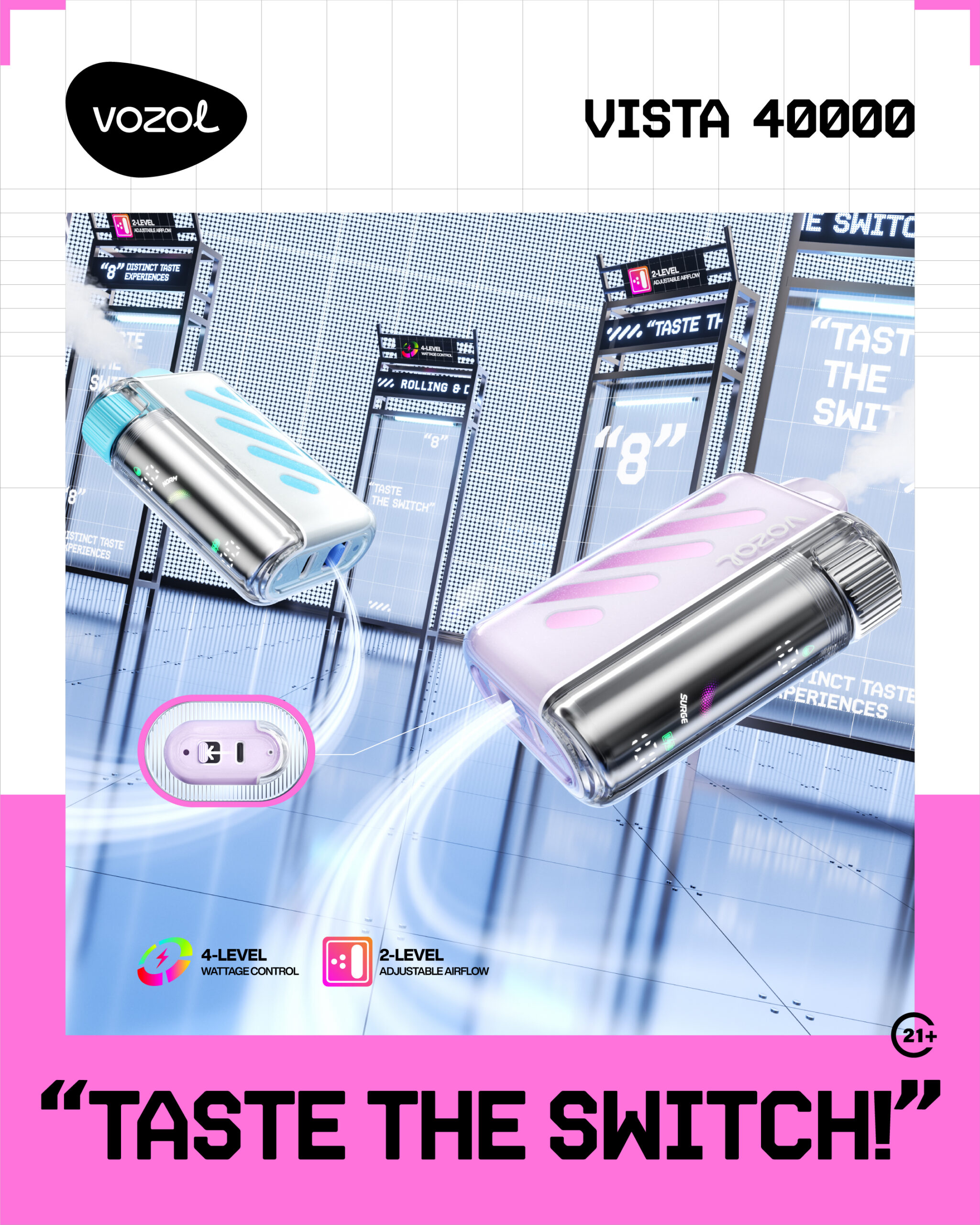 The VOZOL Vista 40000 is a next-generation disposable vape delivering up to 40,000 puffs of smooth, flavorful vapor. Designed for performance and customization, it features a 1000mAh rechargeable battery, dual mesh coil system, and an innovative smart display that shows battery, e-liquid level, and puff count in real time.
