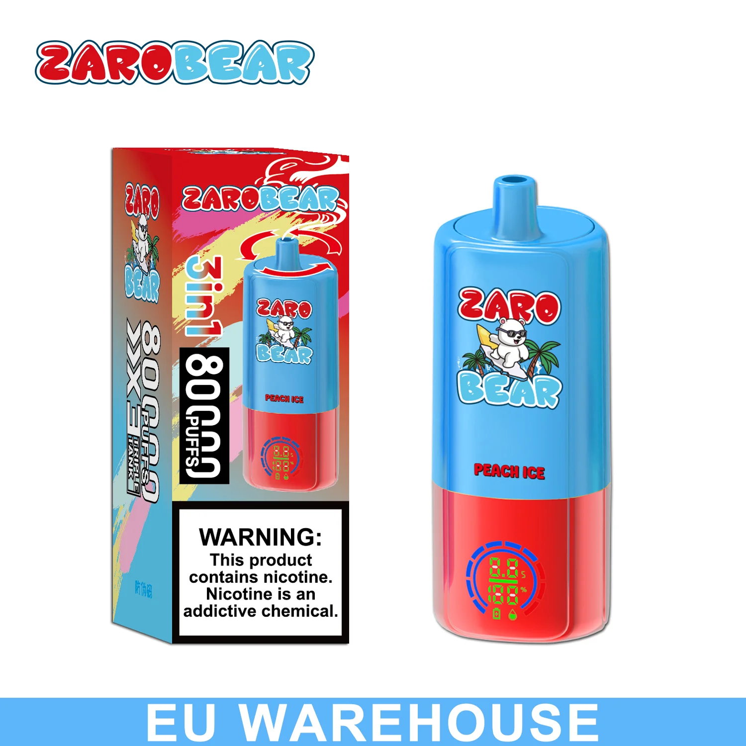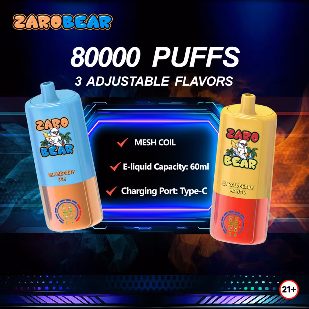 This ZARO Bear Triple flavor 80000 Puffs Disposable Vape Device E-Cigarette is one of the most innovative products in the vaping market today. It is 3in1 Vape with a rechargeable disposable vape device that has a massive 20+20+20ml E-Liquid capacity filled with 5% Nic Salt. It has a powerful 850mAh battery that can support up to 80k puffs of smooth and satisfying vapor.